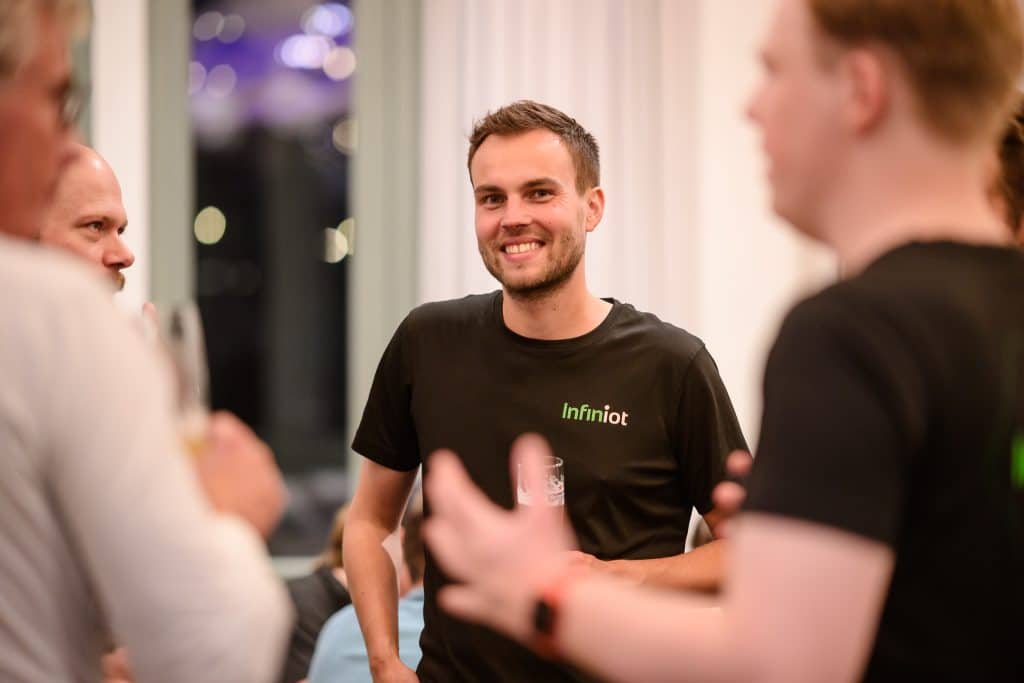 In de jaren dat Arjen werkt voor Infiniot is hij stevig gegroeid in zijn rol. Inmiddels heeft hij bij meerdere opdrachtgevers gewerkt en zo veel ervaring opgedaan. Met zijn technische kennis weet hij precies wat er gevraagd wordt om het rekenmodel te optimaliseren. Met deze achtergrond coacht hij zijn teamleden om ook hen te laten groeien als specialist. “Het coachen is niet iets dat ik van nature deed, maar ik ben er langzaamaan ingerold. Ik help nu de mensen om me heen met technische vraagstukken, maar ook met communicatie en hun functioneren als teamlid. Het mooiste is als iemand groeit en helemaal in zijn rol komt. Net zoals ik zelf in mijn rol als software engineer ben gegroeid. Dat geeft zeker een extra dimensie aan werk.”